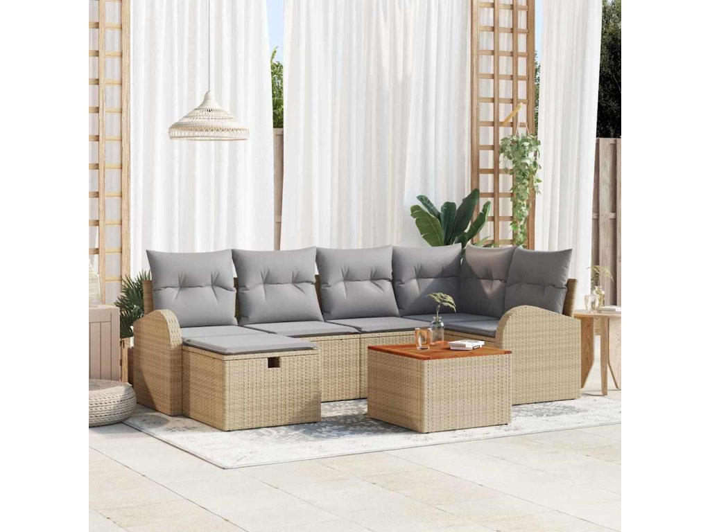 Sada zahradních pohovek s polštářem 7 pcs Béžová Poly ratan 3359511