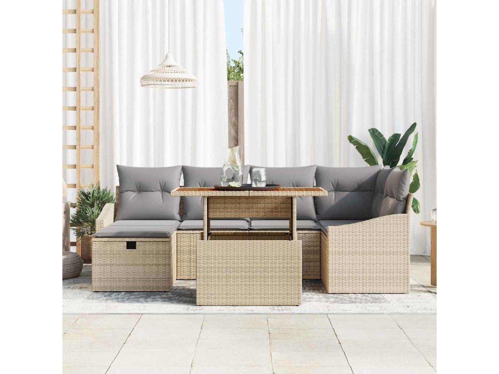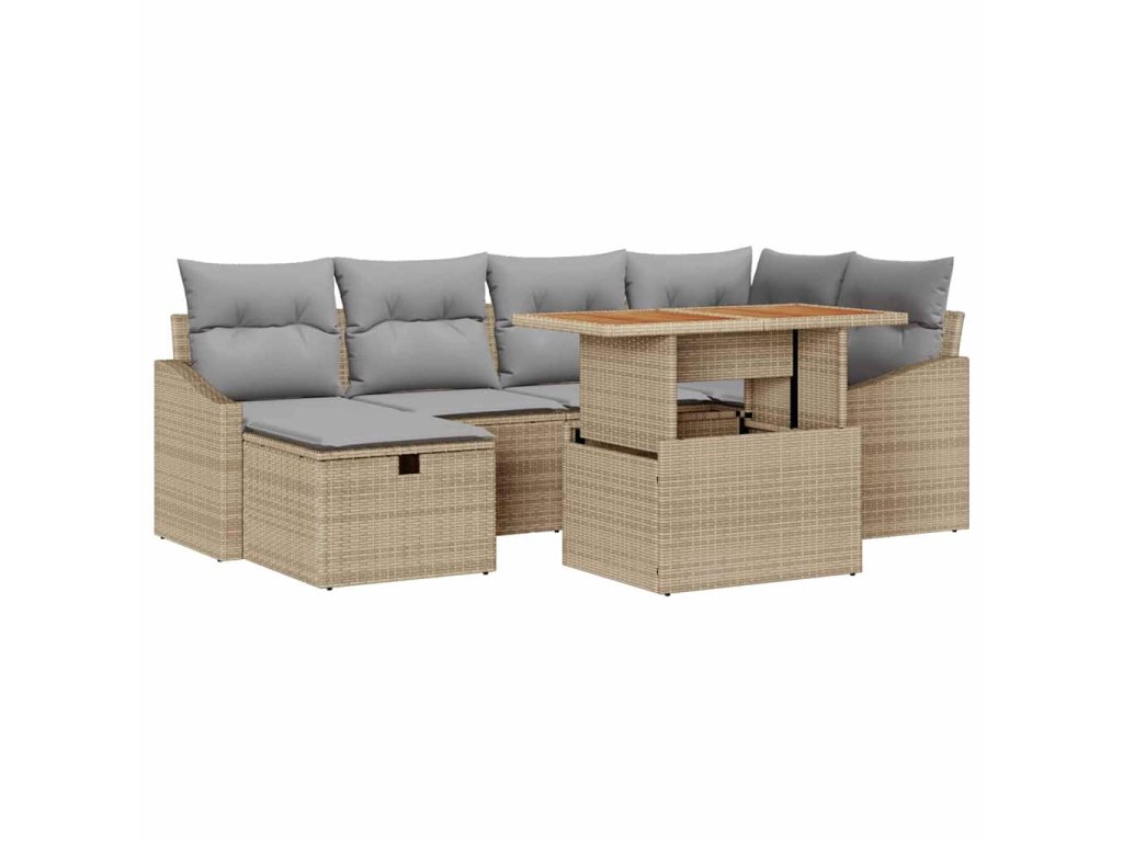 Sada zahradních pohovek s polštářem 7 pcs Béžová Poly ratan 3360025