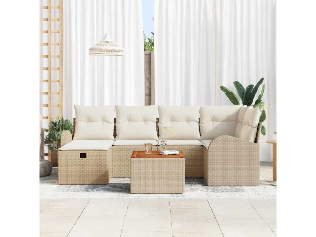 Sada zahradních pohovek s polštářem 7 pcs Béžová Poly ratan 3360844