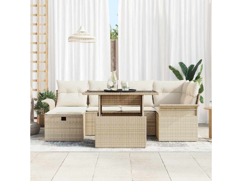 Sada zahradních pohovek s polštářem 7 pcs Béžová Poly ratan 3361010