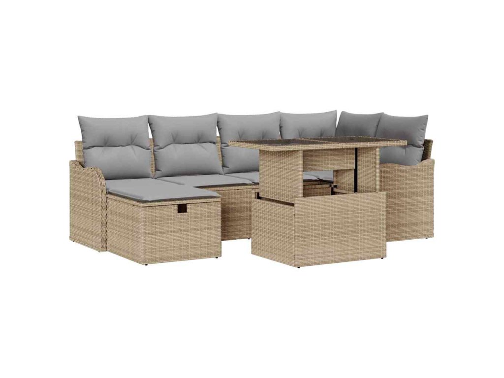 Sada zahradních pohovek s polštářem 7 pcs Béžová Poly ratan 3361049