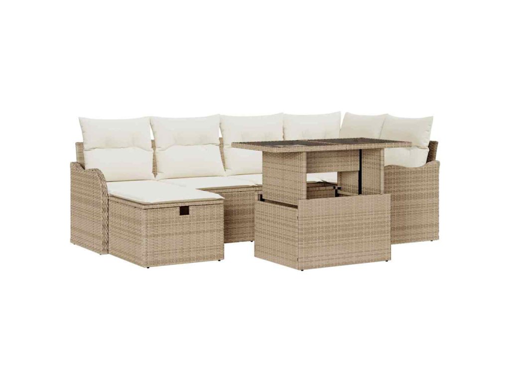 Sada zahradních pohovek s polštářem 7 pcs Béžová Poly ratan 3361050