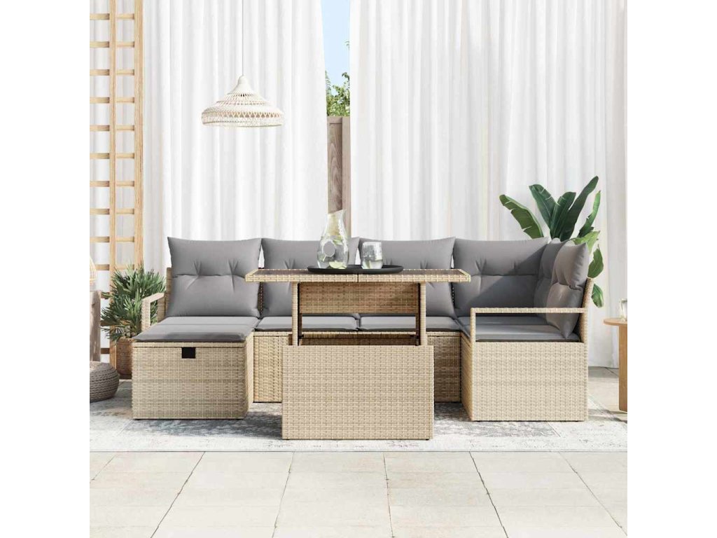 Sada zahradních pohovek s polštářem 7 pcs Béžová Poly ratan 3361129