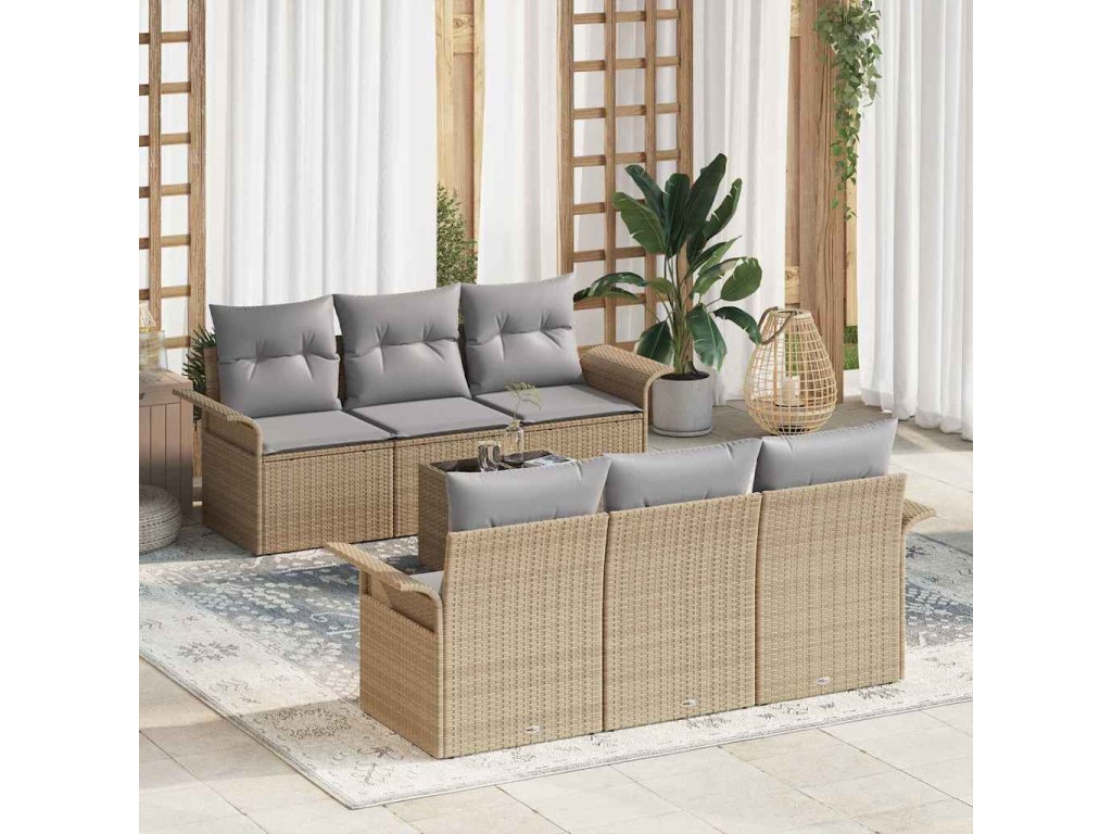 Sada zahradních pohovek s polštářem 7 pcs Béžová polyratan 3345250