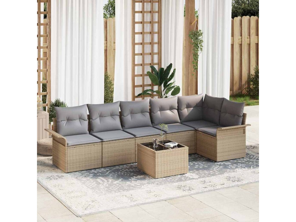 Sada zahradních pohovek s polštářem 7 pcs Béžová polyratan 3345390