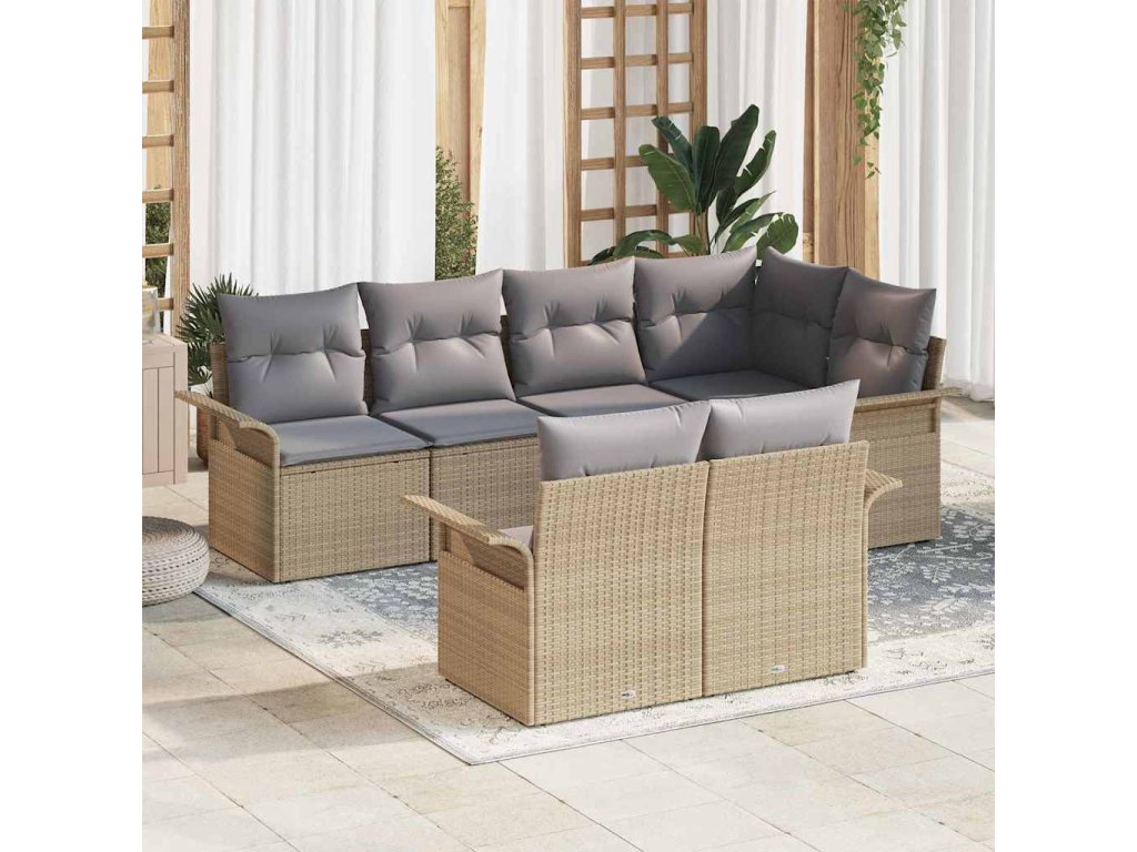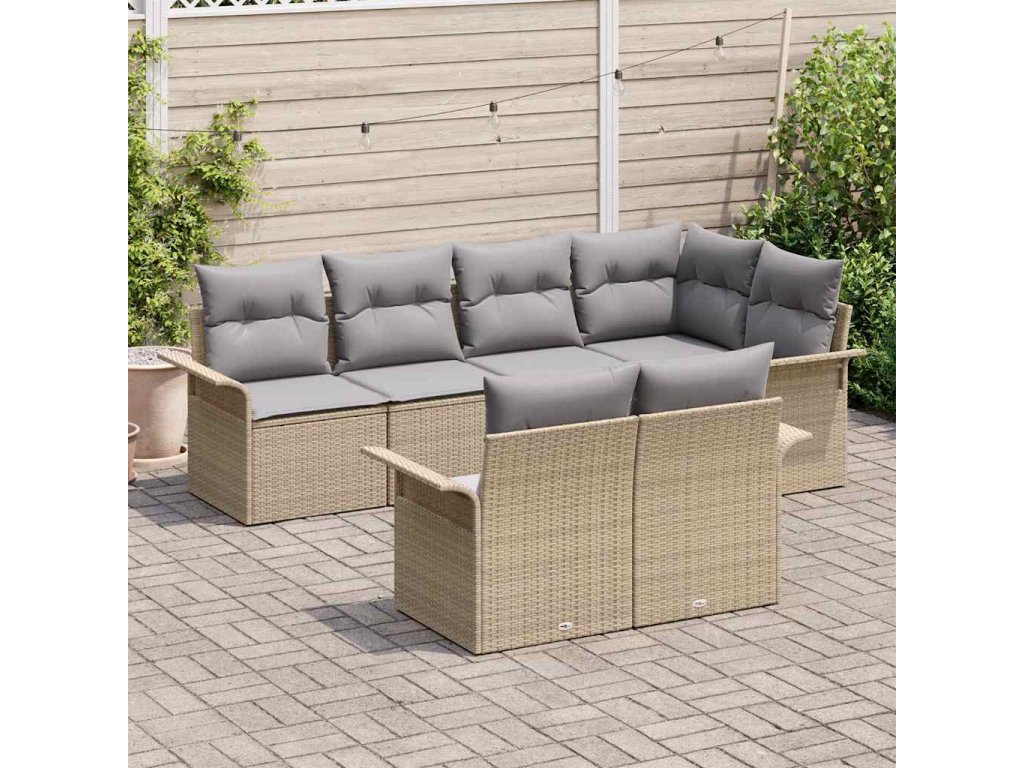 Sada zahradních pohovek s polštářem 7 pcs Béžová polyratan 3345400