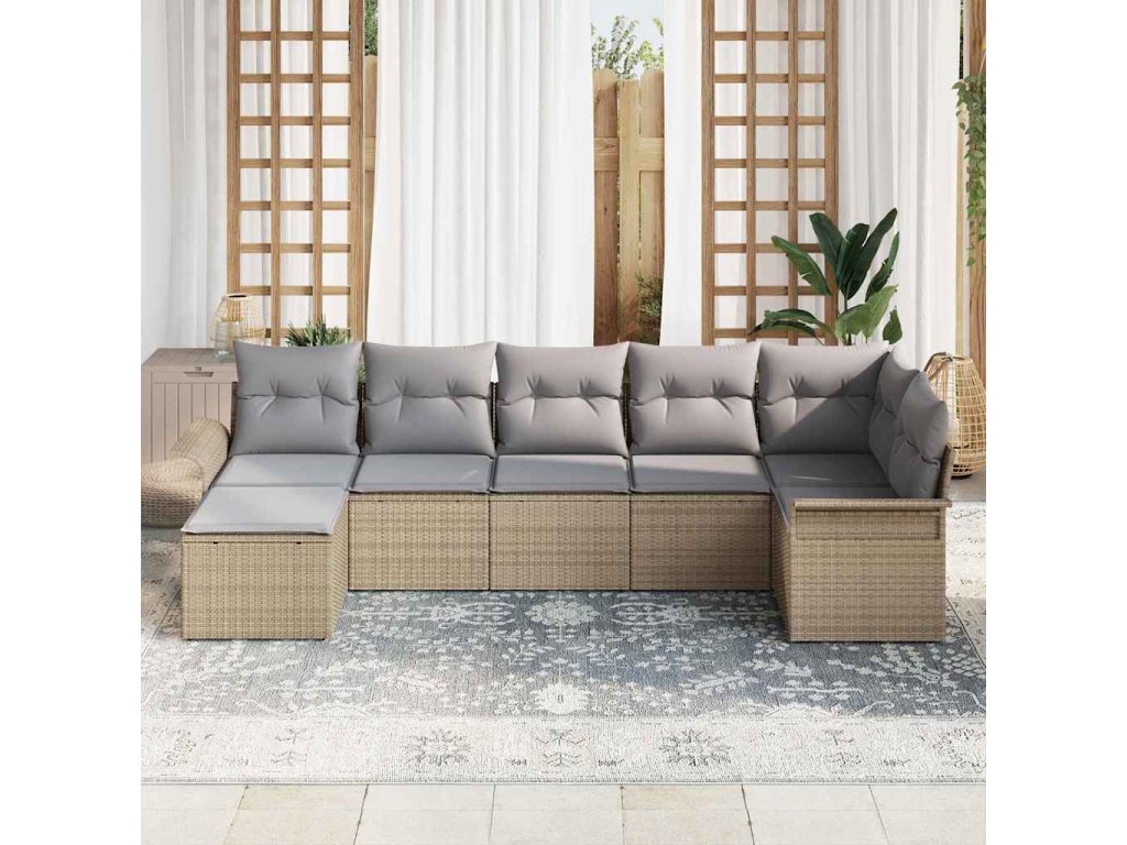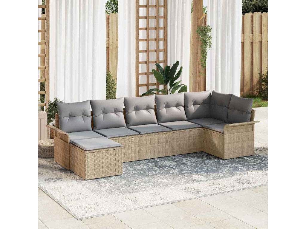 Sada zahradních pohovek s polštářem 7 pcs Béžová polyratan 3345450