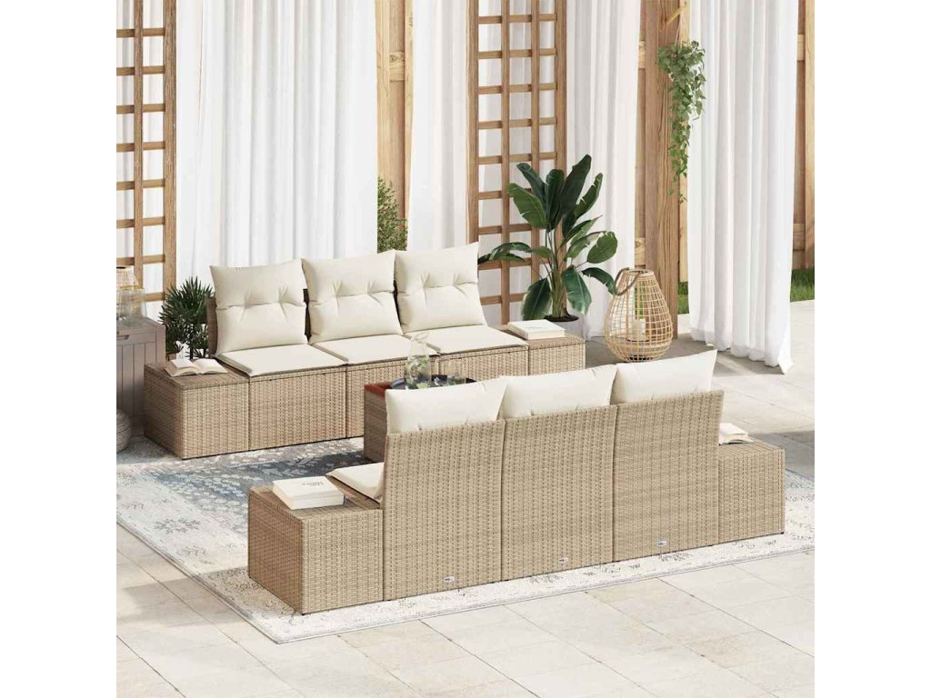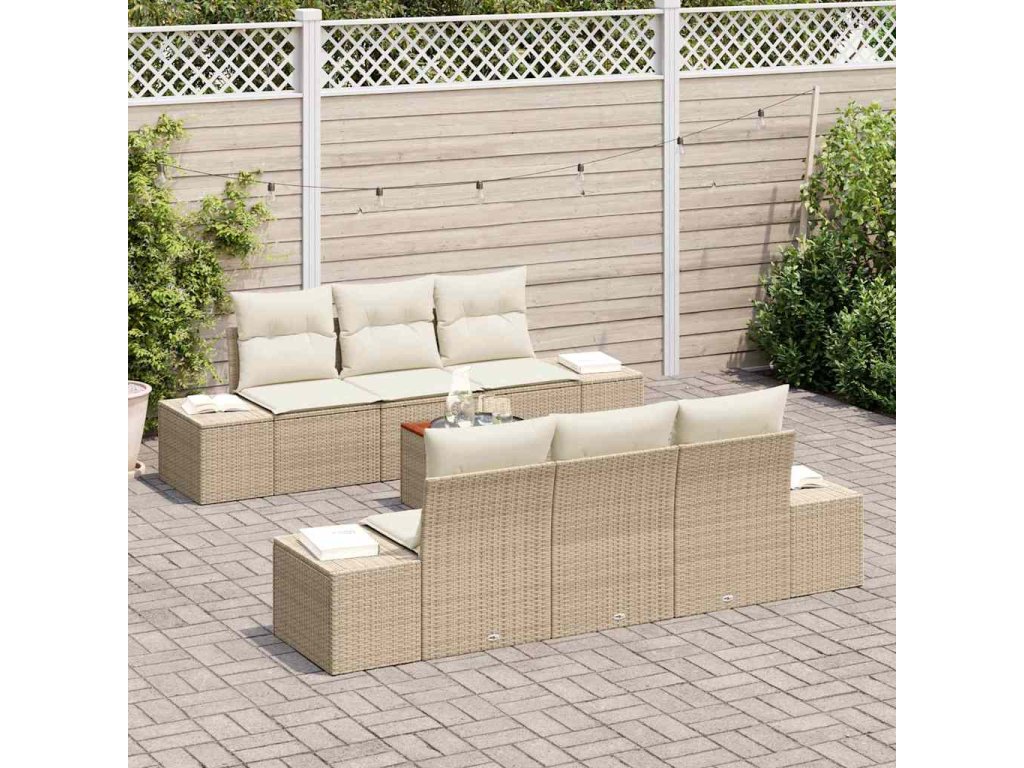 Sada zahradních pohovek s polštářem 7 pcs Béžová polyratan 3347904