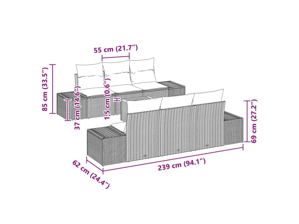 - 4 x boční sofa: 37 x 62 x 37 cm (D x Š x V)