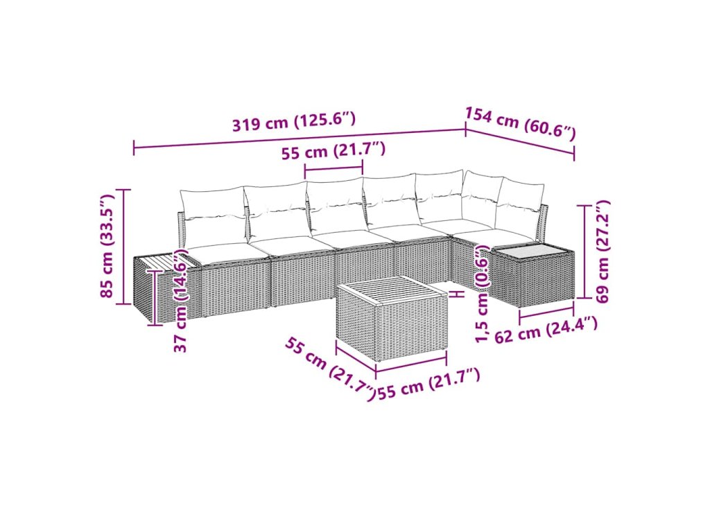 Sada zahradních pohovek s polštářem 7 pcs Béžová polyratan 3348101