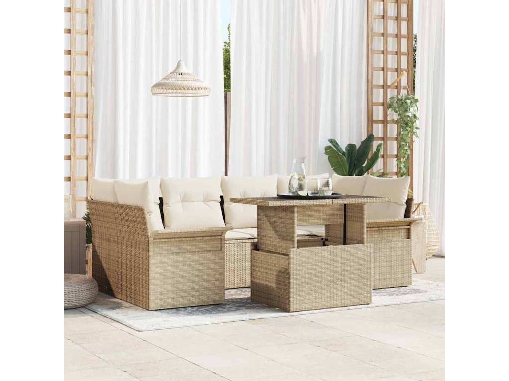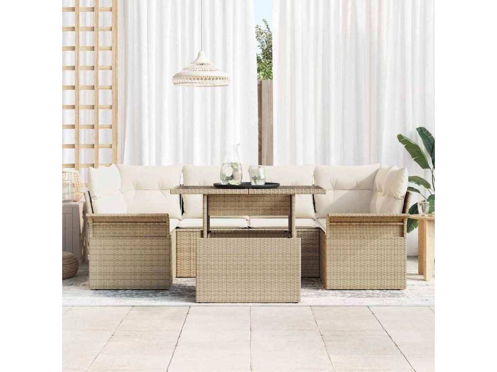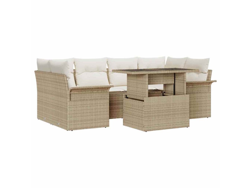 Sada zahradních pohovek s polštářem 7 pcs Béžová polyratan 3348217