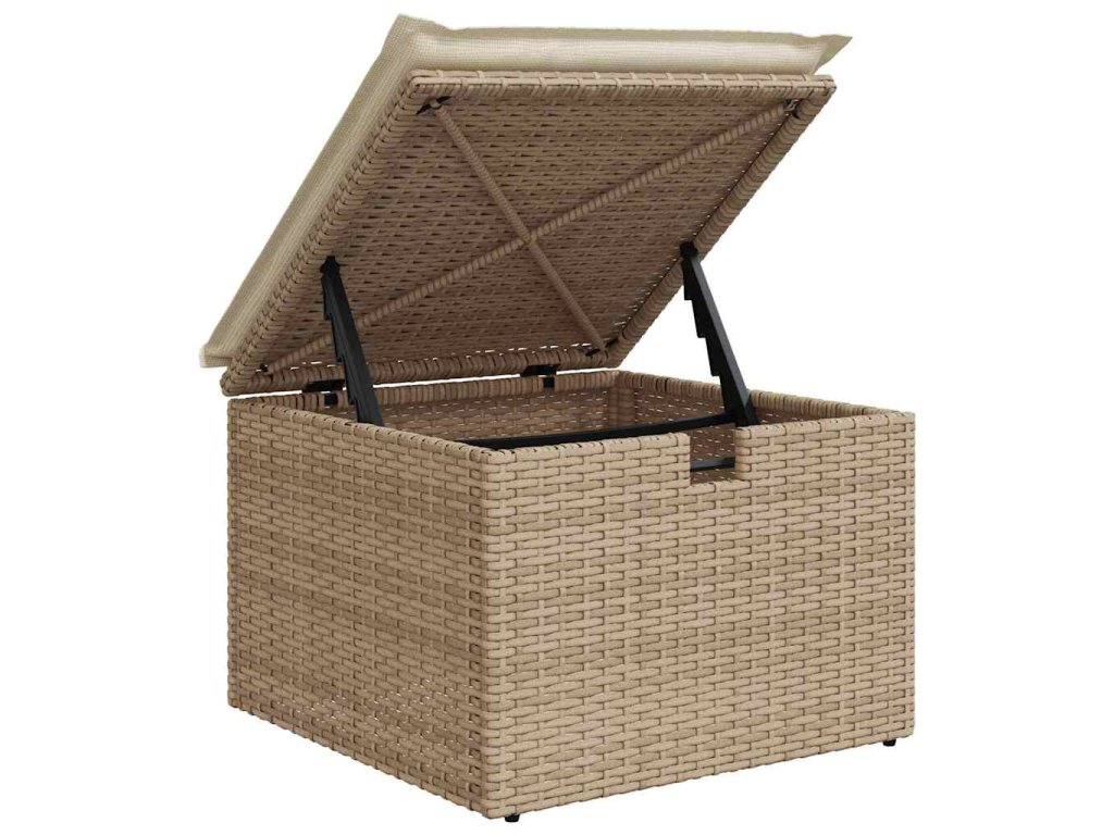 - Funkční komponenty: Každý modul zahrnuje pohodlné sedáky a opěrky vyrobené z poly ratanu. Skryté úložné prostory v lavicích přidávají praktičnost, takže můžete schovat polštáře nebo jiné věci pohodlně.