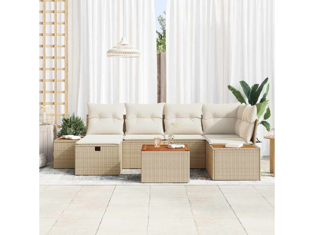 Sada zahradních pohovek s polštářem 7 pcs Béžová polyratan 3360970