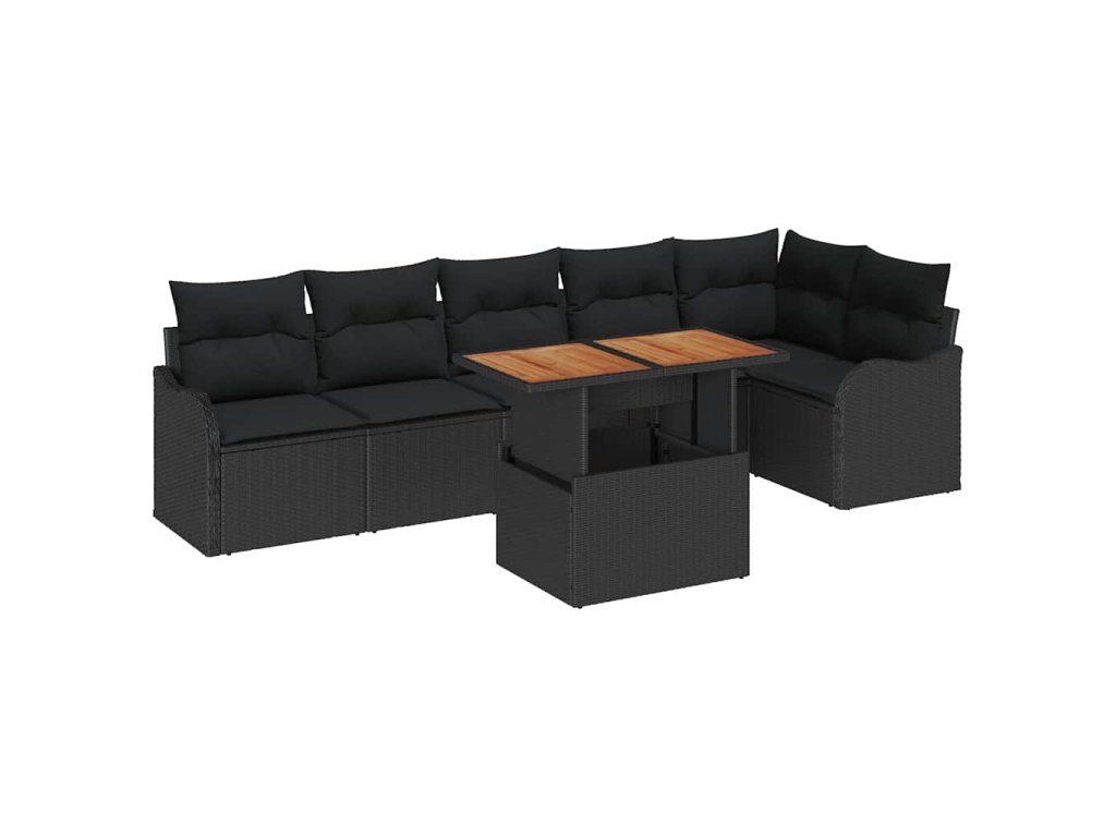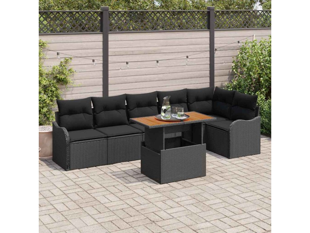 Sada zahradních pohovek s polštářem 7 pcs Černá 3349470