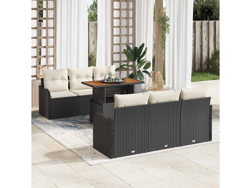 Sada zahradních pohovek s polštářem 7 pcs Černá a krémová 3349403