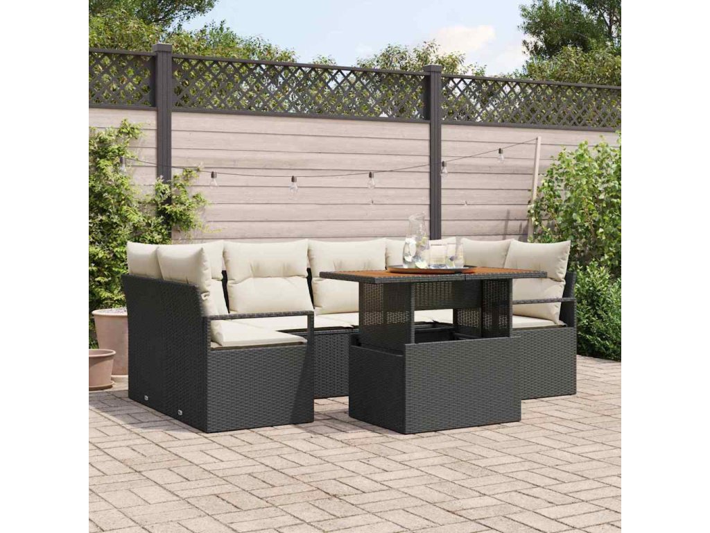 Sada zahradních pohovek s polštářem 7 pcs Černá a krémová 3349662