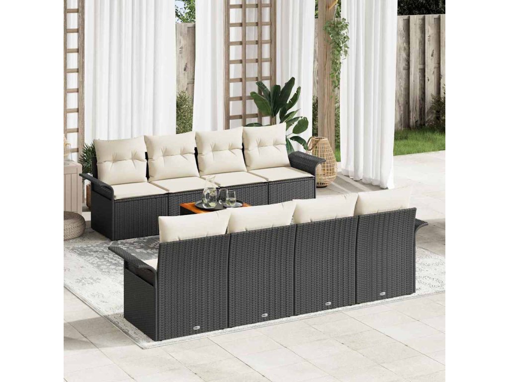 Sada zahradních pohovek s polštářem 7 pcs Černá a krémová 3355968