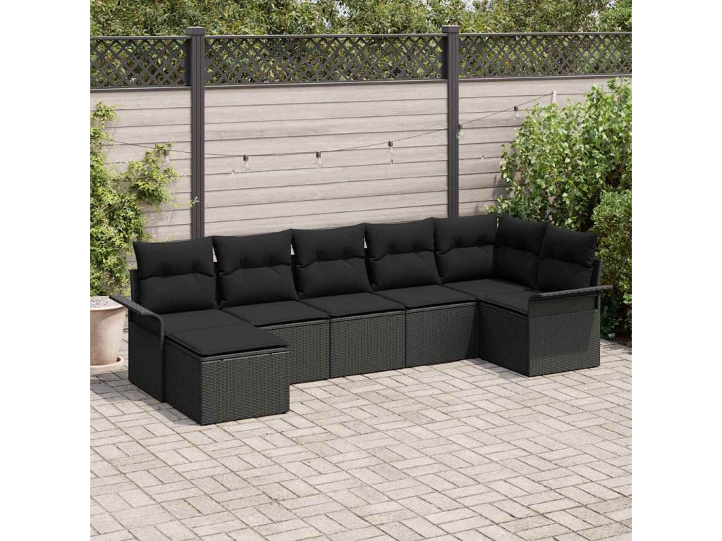 Sada zahradních pohovek s polštářem 7 pcs Černá Poly ratan 3345453