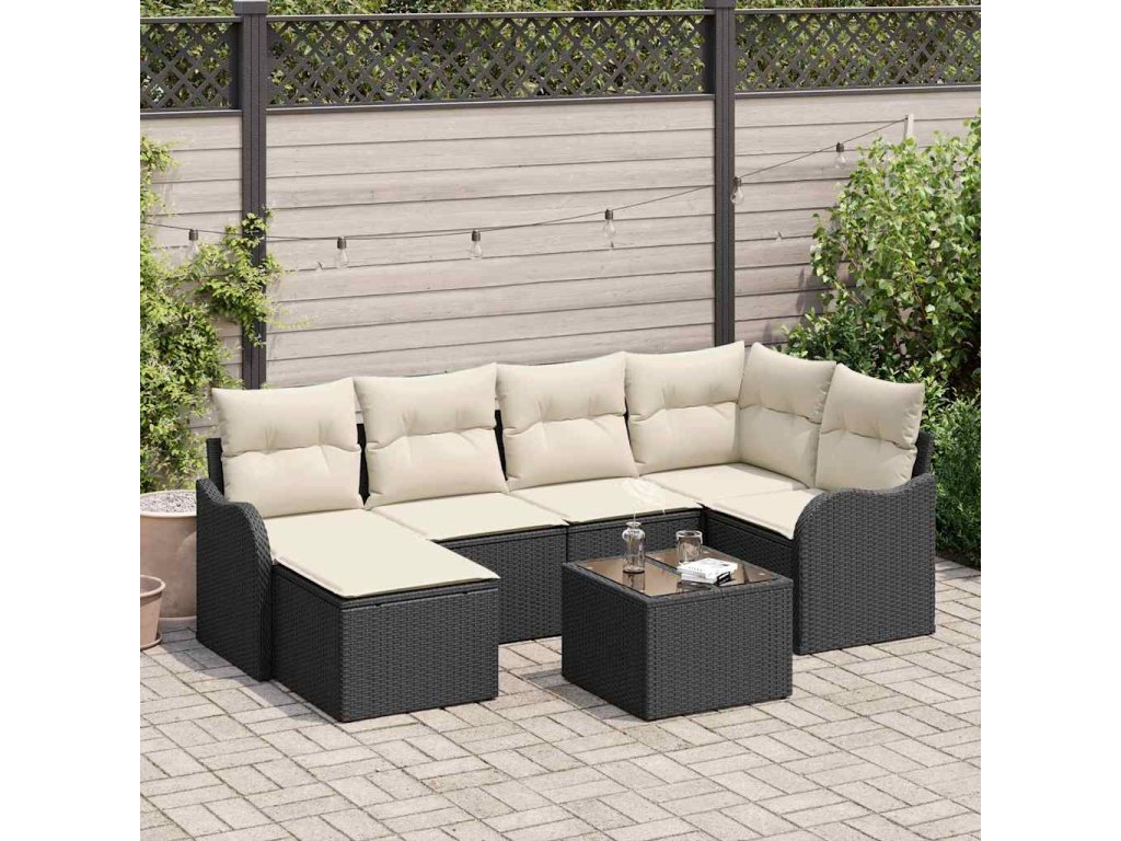 Sada zahradních pohovek s polštářem 7 pcs Černá Poly ratan 3345777