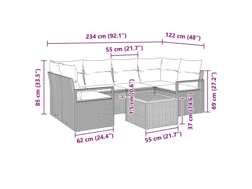 Sada zahradních pohovek s polštářem 7 pcs Černá Poly ratan 3347660