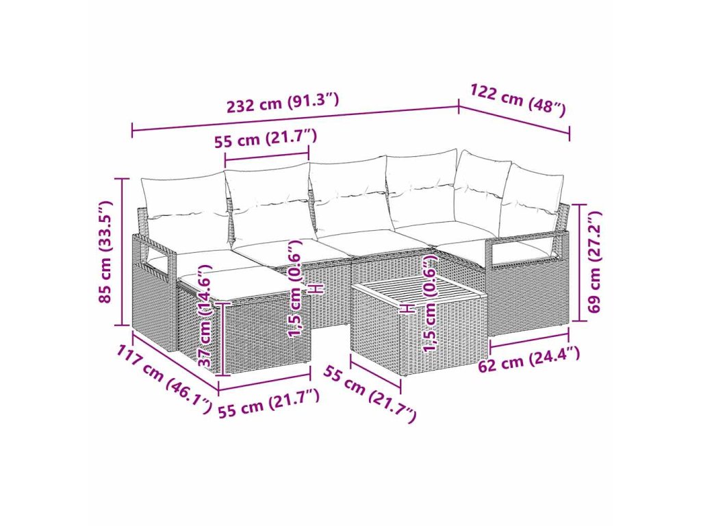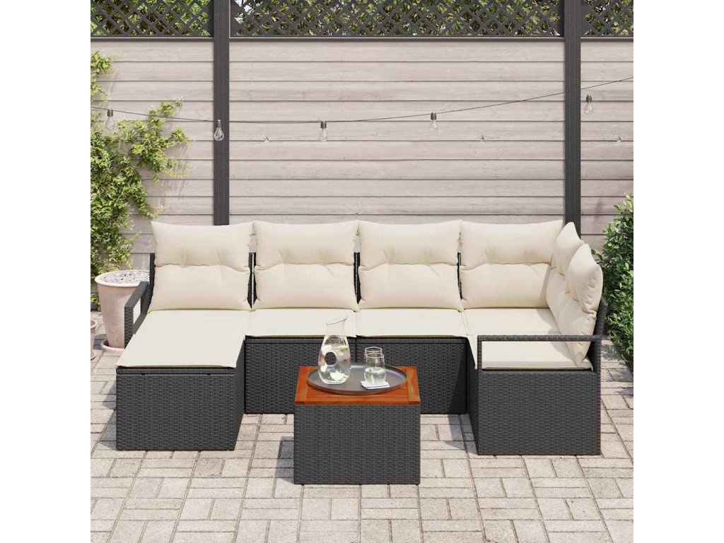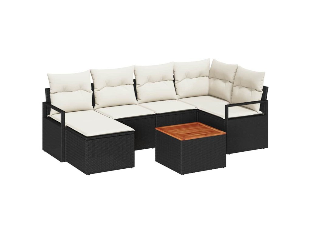 Sada zahradních pohovek s polštářem 7 pcs Černá Poly ratan 3347726