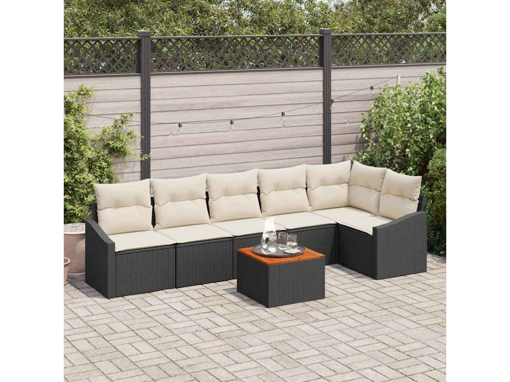 Sada zahradních pohovek s polštářem 7 pcs Černá Poly ratan 3347838