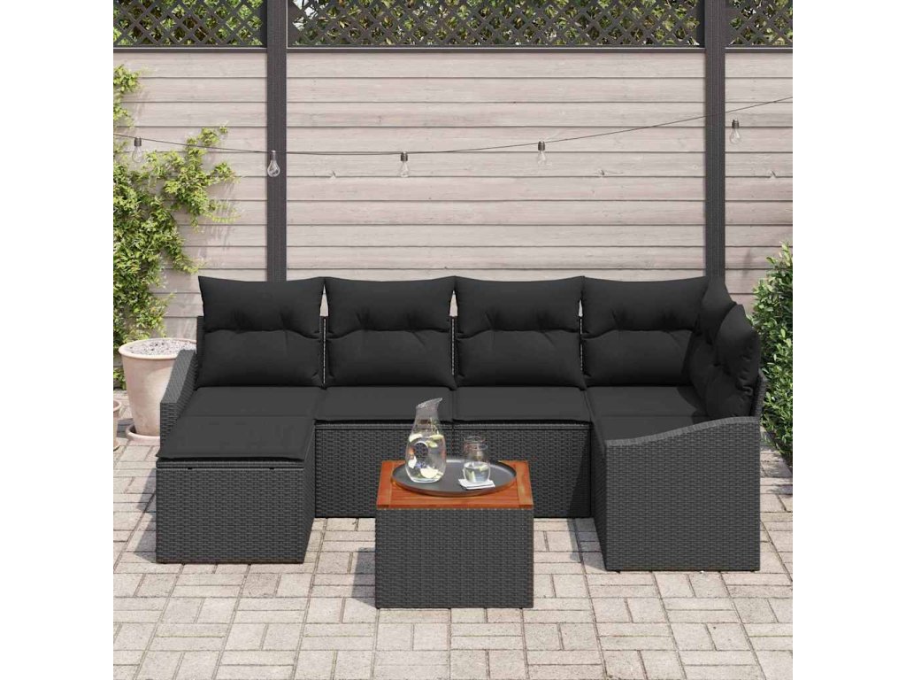 Sada zahradních pohovek s polštářem 7 pcs Černá Poly ratan 3347856
