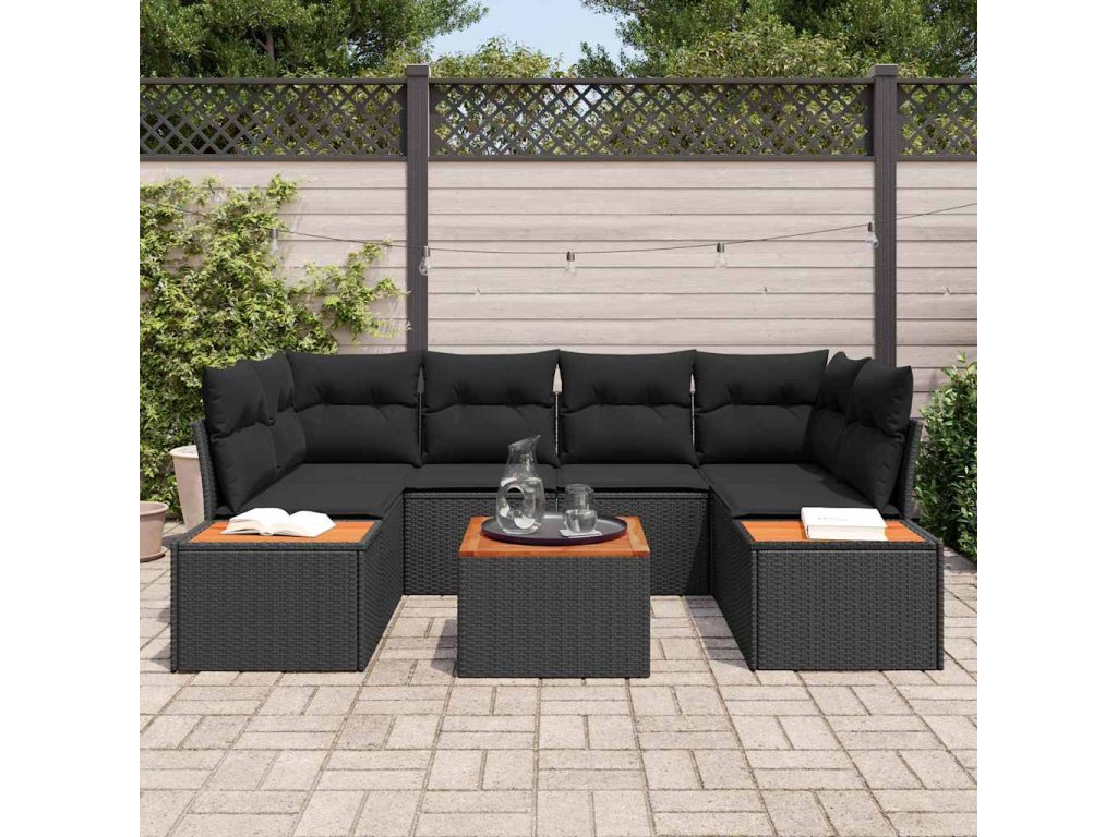 Sada zahradních pohovek s polštářem 7 pcs Černá Poly ratan 3348034