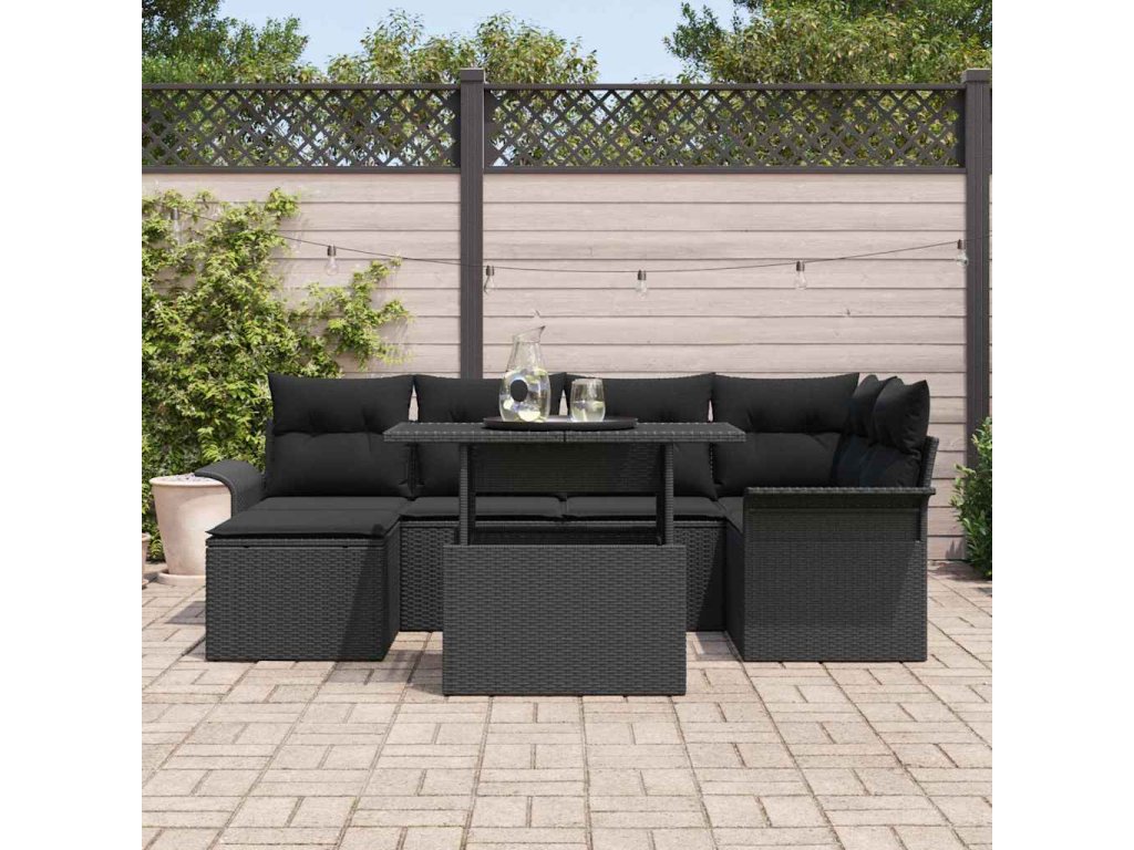 Sada zahradních pohovek s polštářem 7 pcs Černá Poly ratan 3348319