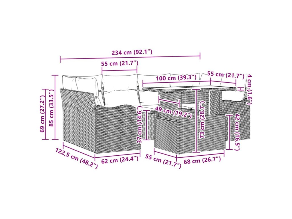 Sada zahradních pohovek s polštářem 7 pcs Černá Poly ratan 3348399