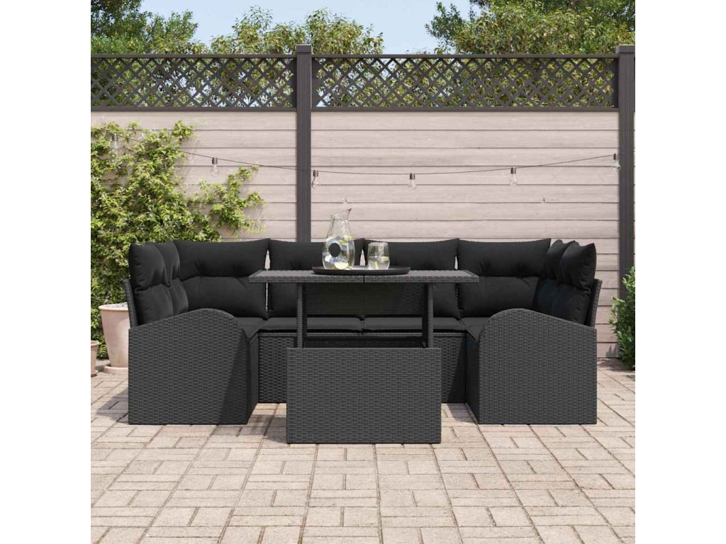 Sada zahradních pohovek s polštářem 7 pcs Černá Poly ratan 3348579