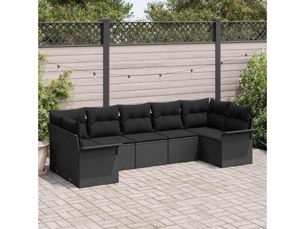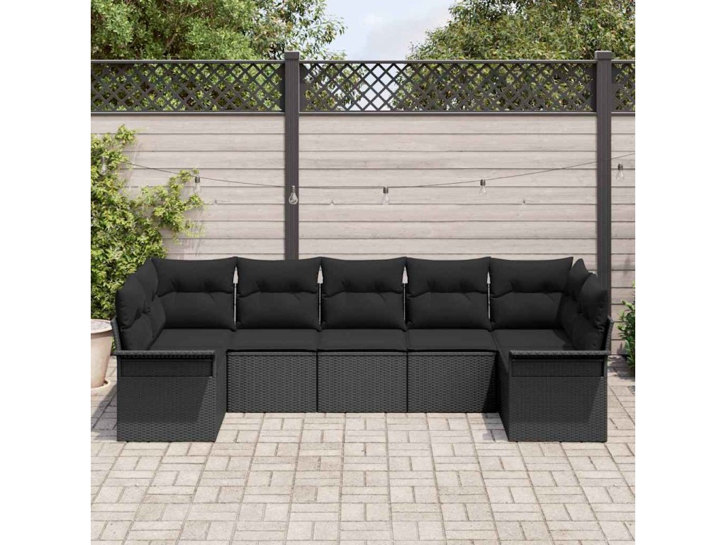 Sada zahradních pohovek s polštářem 7 pcs Černá Poly ratan 3354182