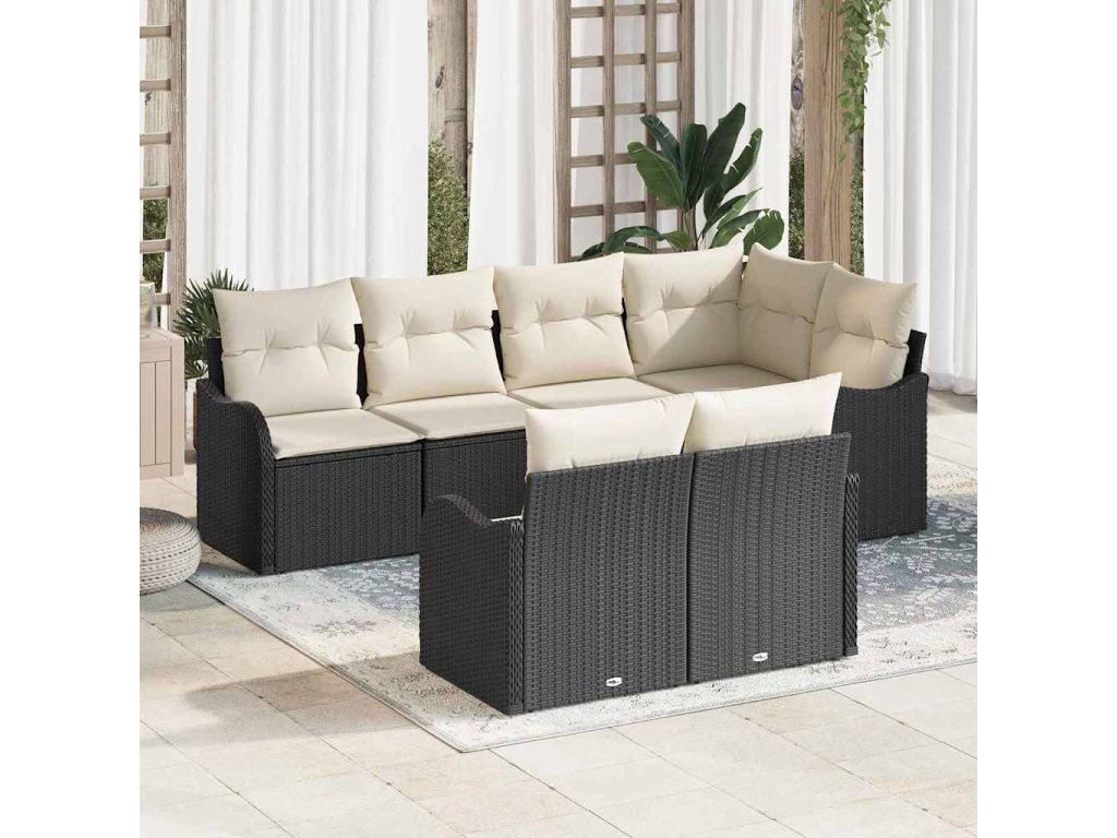 Sada zahradních pohovek s polštářem 7 pcs Černá Poly ratan 3354406