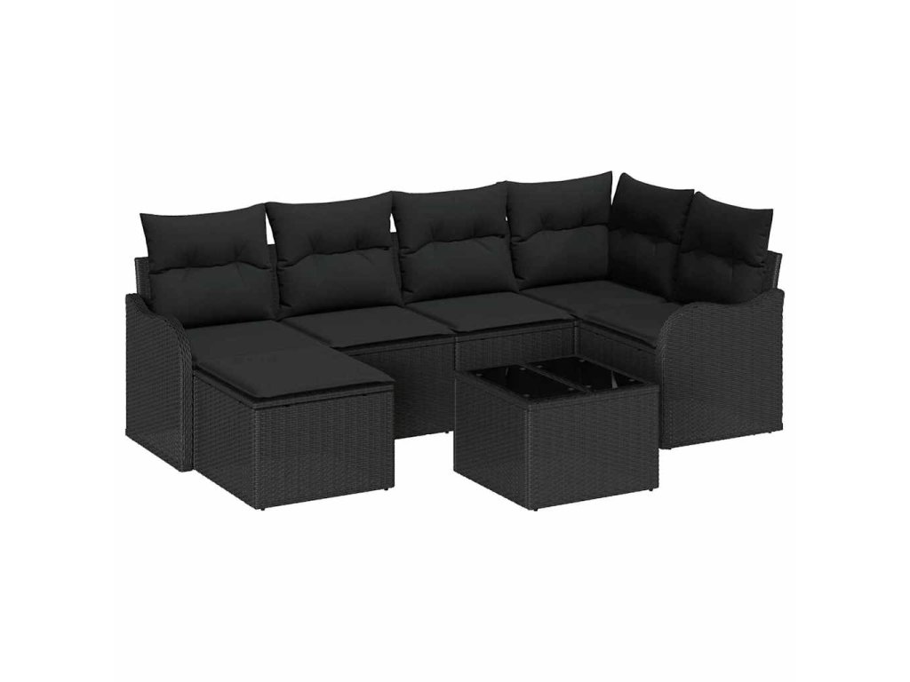 Sada zahradních pohovek s polštářem 7 pcs Černá Poly ratan 3354452