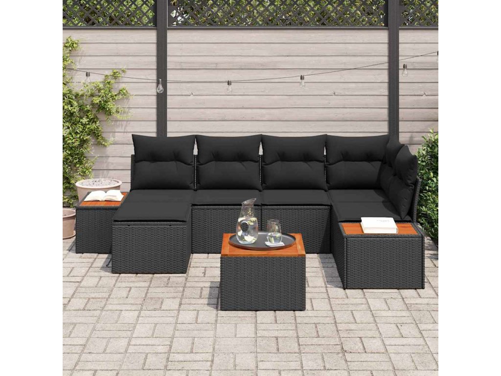 Sada zahradních pohovek s polštářem 7 pcs Černá Poly Ratan 3356793