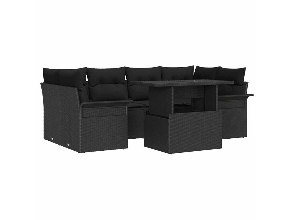 Sada zahradních pohovek s polštářem 7 pcs Černá Poly Ratan 3356956