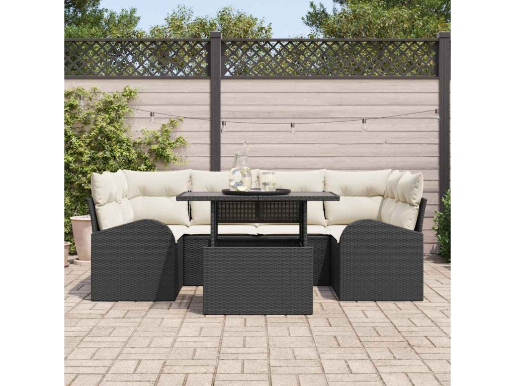Sada zahradních pohovek s polštářem 7 pcs Černá Poly Ratan 3357310