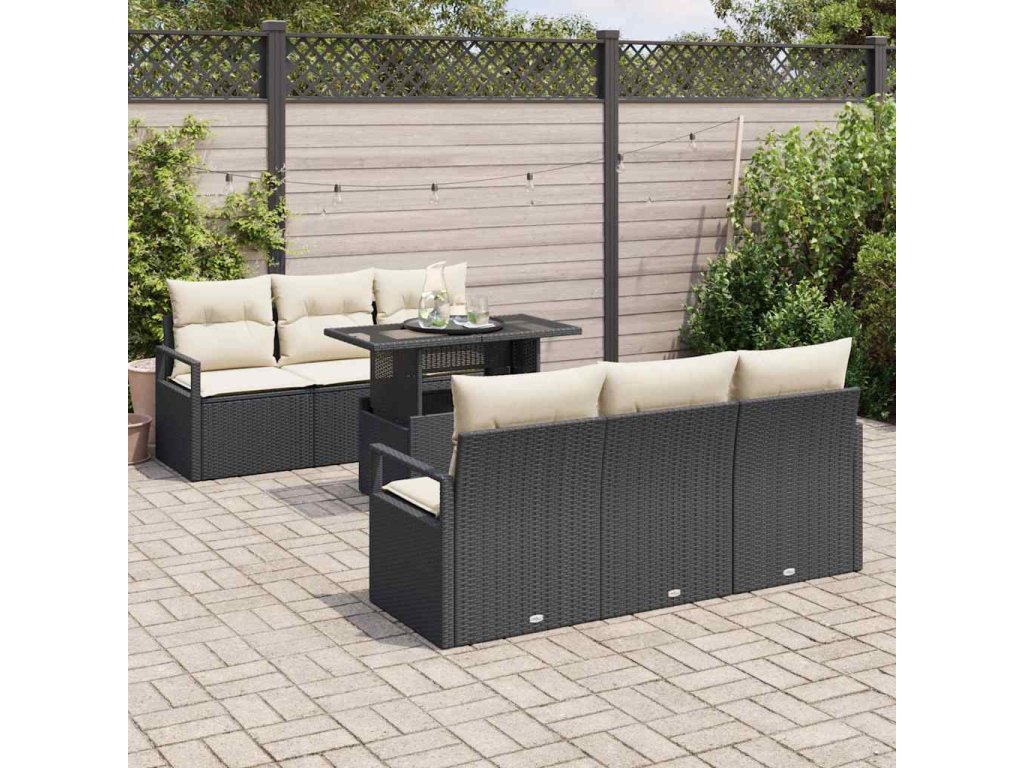 Sada zahradních pohovek s polštářem 7 pcs Černá Poly ratan 3357480
