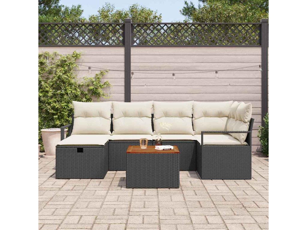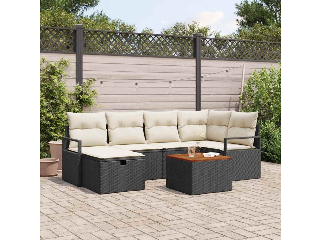 Sada zahradních pohovek s polštářem 7 pcs Černá Poly ratan 3359537