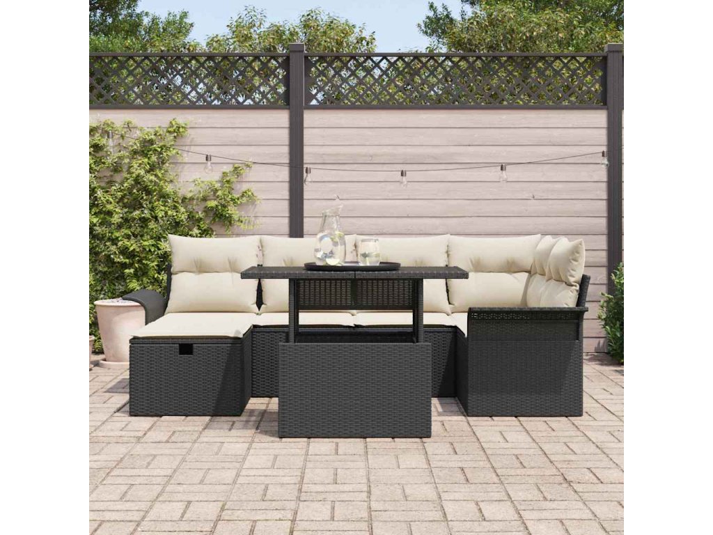 Sada zahradních pohovek s polštářem 7 pcs Černá Poly ratan 3359674