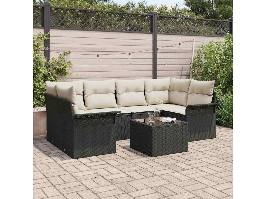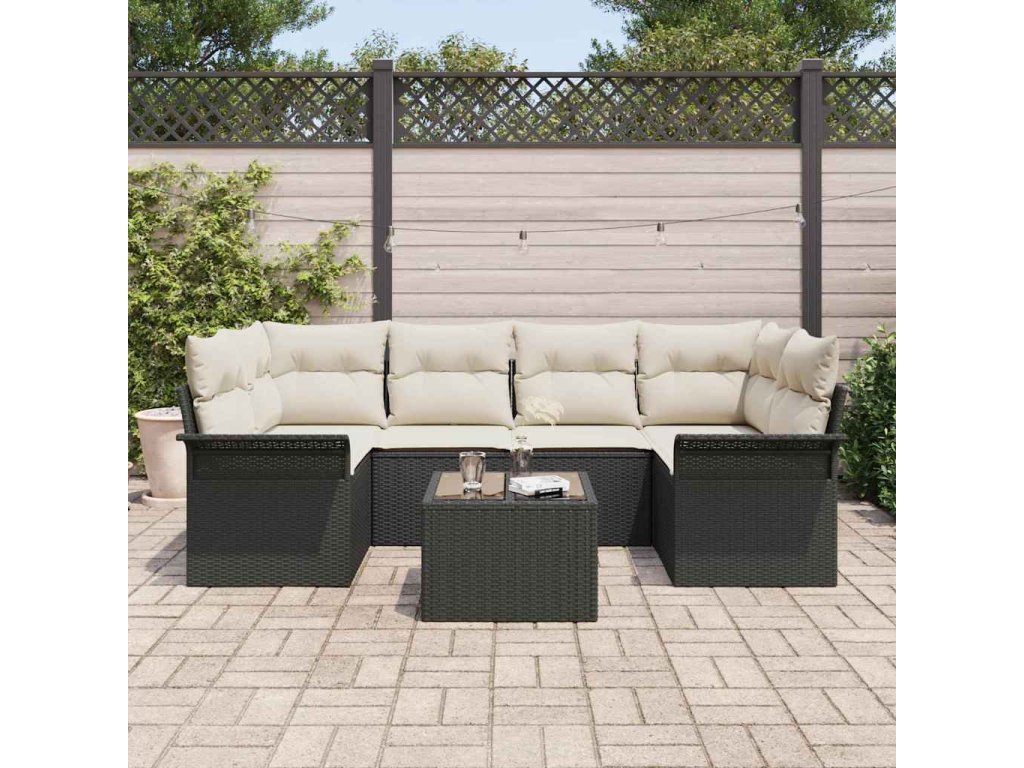 Sada zahradních pohovek s polštářem 7 pcs Černá polyratan 3345257