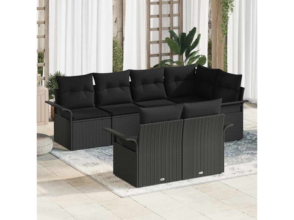 Sada zahradních pohovek s polštářem 7 pcs Černá polyratan 3345403