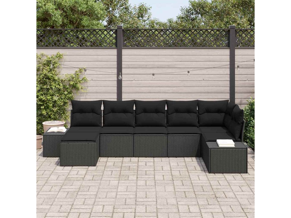Sada zahradních pohovek s polštářem 7 pcs Černá polyratan 3347153