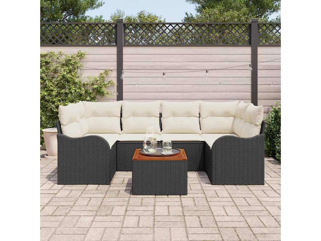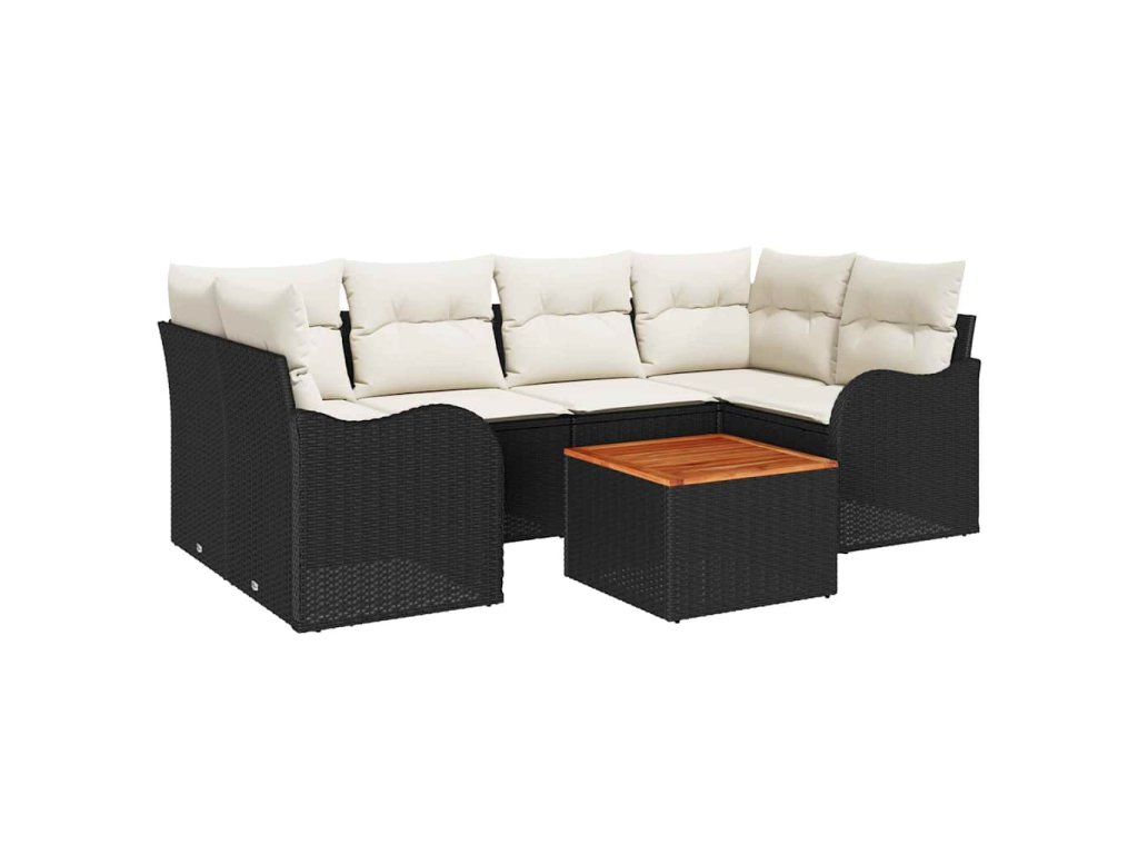 Sada zahradních pohovek s polštářem 7 pcs Černá polyratan 3347404