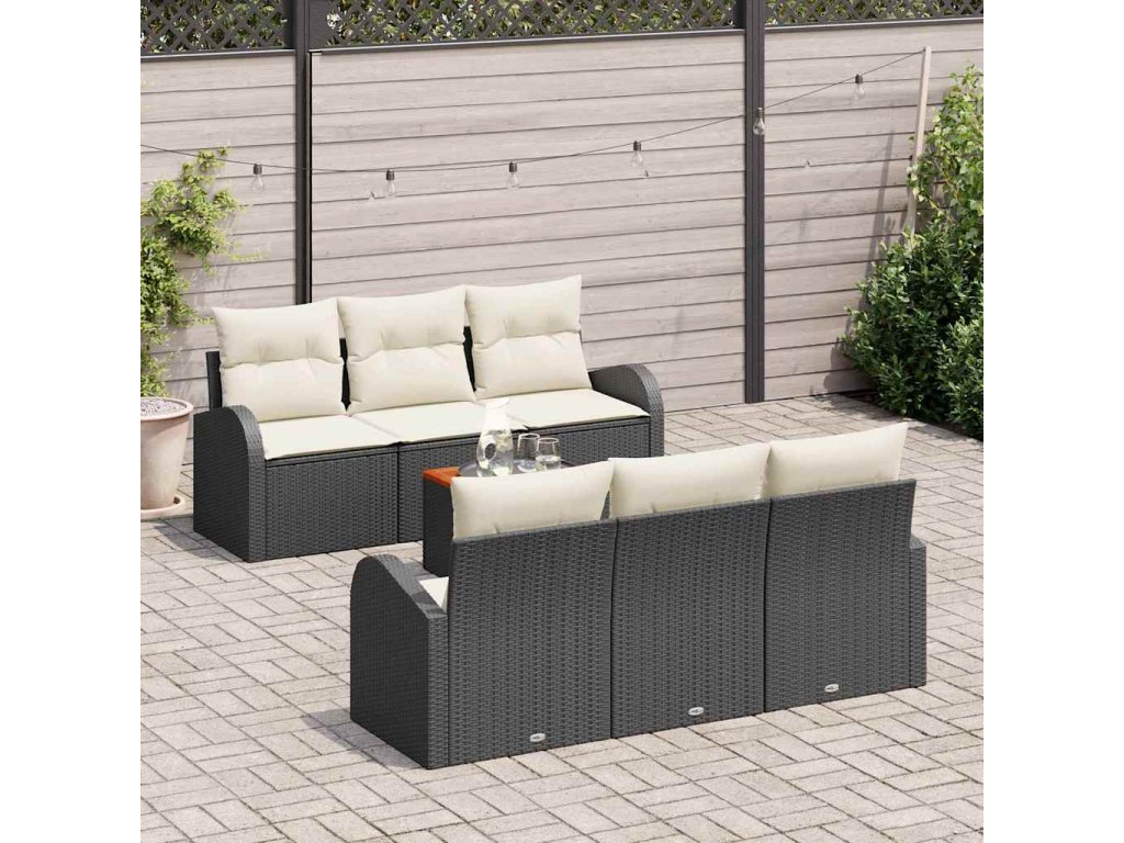 Sada zahradních pohovek s polštářem 7 pcs Černá polyratan 3347523