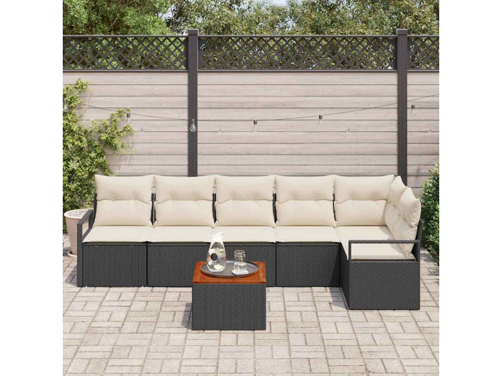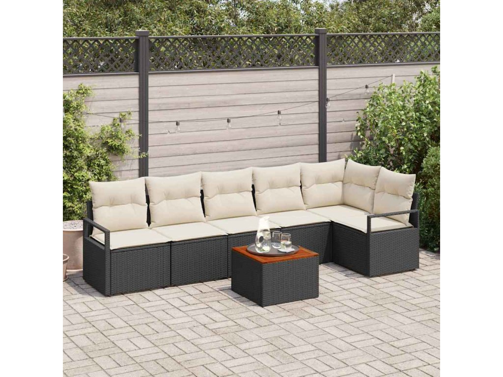 Sada zahradních pohovek s polštářem 7 pcs Černá polyratan 3347712