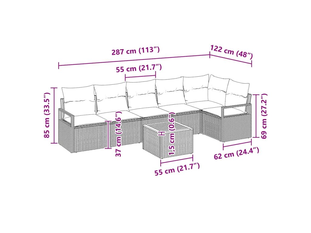 - Zahrnuté komponenty: Souprava se skládá ze tří středních sedadel, rohové části, dvou křesel a stolu. Každá část je pečlivě navržena pro maximální pohodlí a funkčnost. Má i pěkné dokončení na zadní straně pro hezký vzhled ze všech úhlů a měkká sedací polštářky se zipy pro snadné čištění.