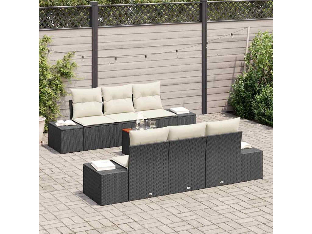 Sada zahradních pohovek s polštářem 7 pcs Černá polyratan 3347901