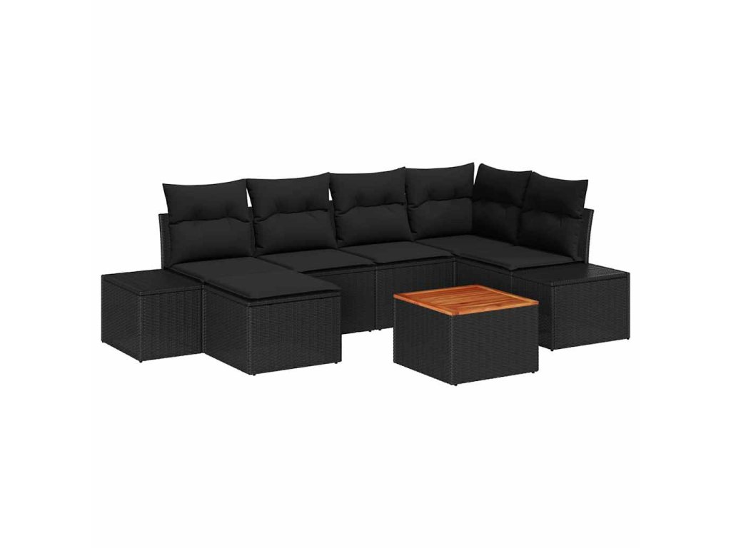 Sada zahradních pohovek s polštářem 7 pcs Černá polyratan 3347982