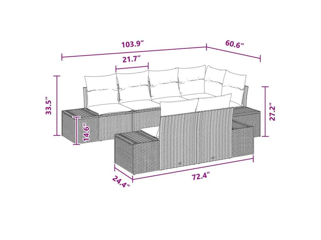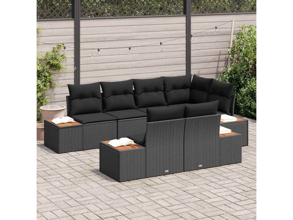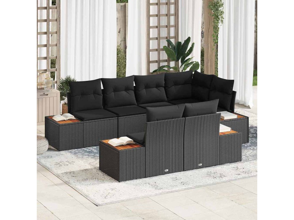 Sada zahradních pohovek s polštářem 7 pcs Černá polyratan 3348104